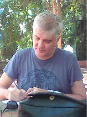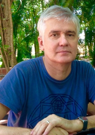 Aprovecho la cobertura que me brinda el Laboratorio Internacional de Verano Traspasos Escénicos, donde tuve la oportunidad de participar en el Laboratorio que él impartió en la Universidad de las Artes. Al terminar la primera sesión, le pido 20 minutos de su tiempo para conversar, ahora sí, sobre su teatro y amablemente me regala el doble del tiempo.